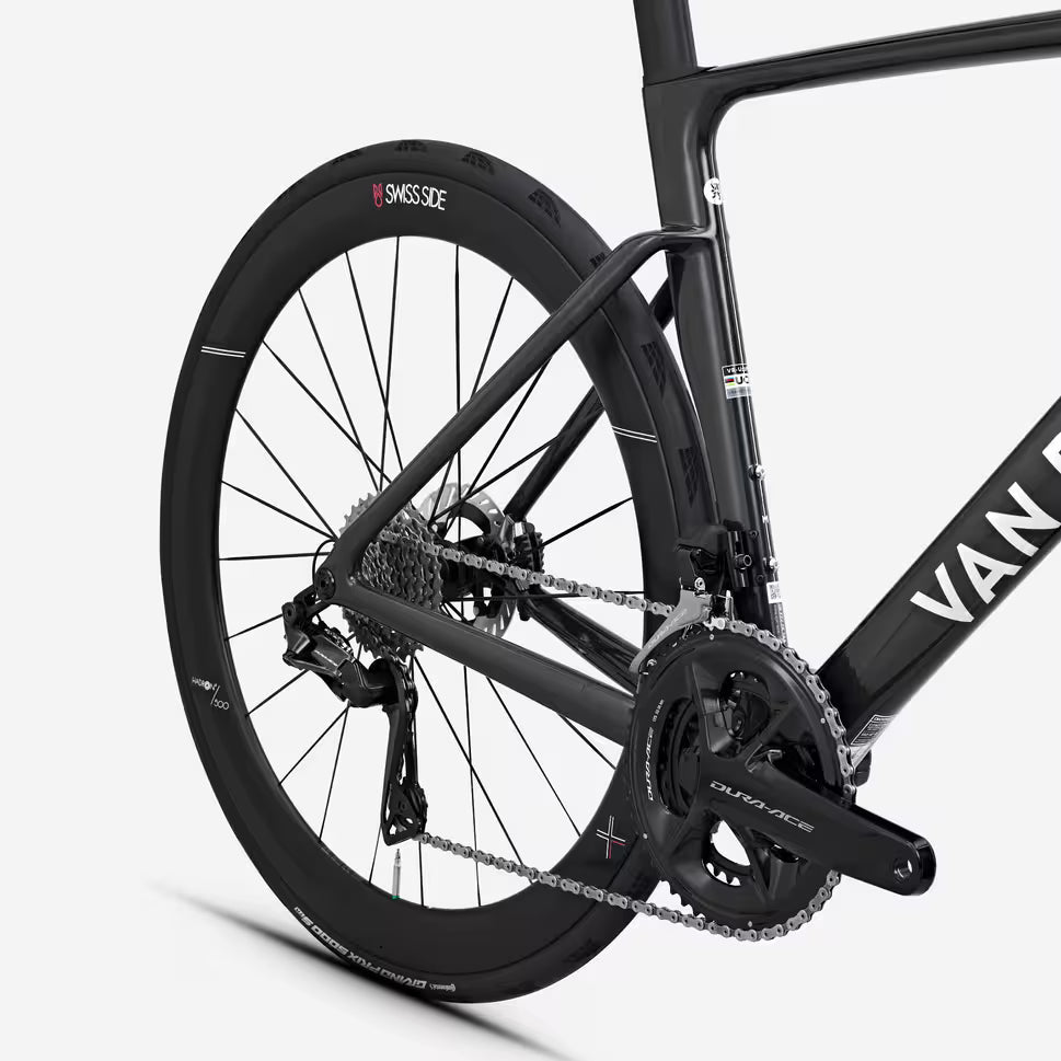 Les roues Swiss Side Hadron² 500 Ultimate combinent ingénierie F1 et composants premium. Profil de 50 mm, moyeux DT Arc 180 céramiques : l'équilibre parfait entre aérodynamisme et polyvalence sur tous les terrains.